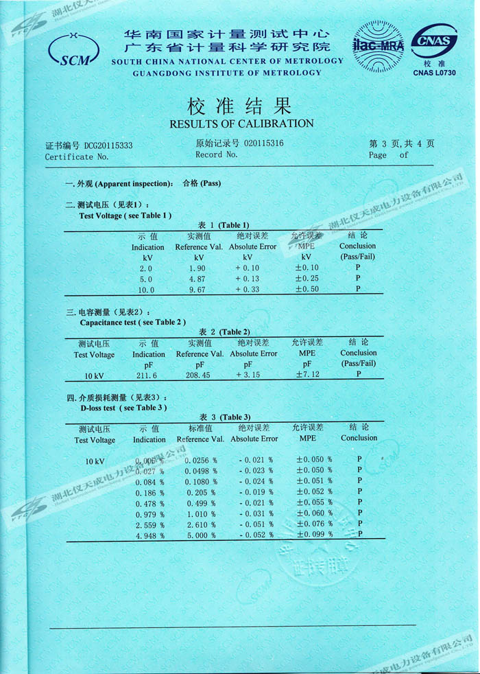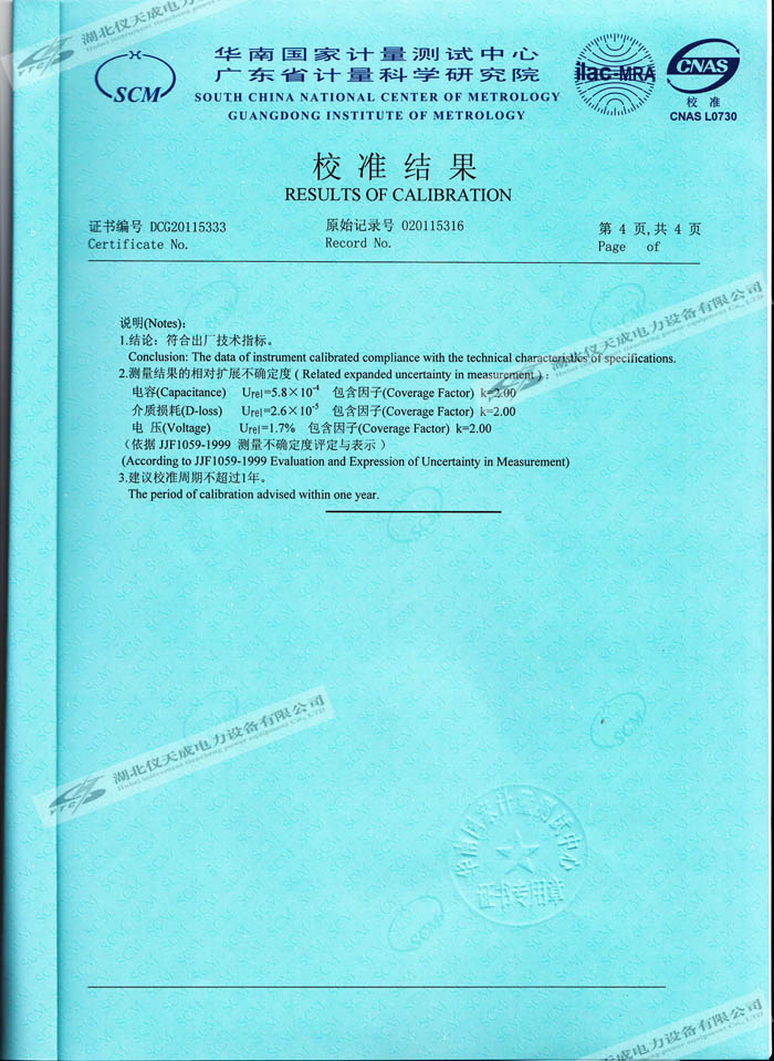 YTC309抗干擾介質損耗測試儀的資質證書