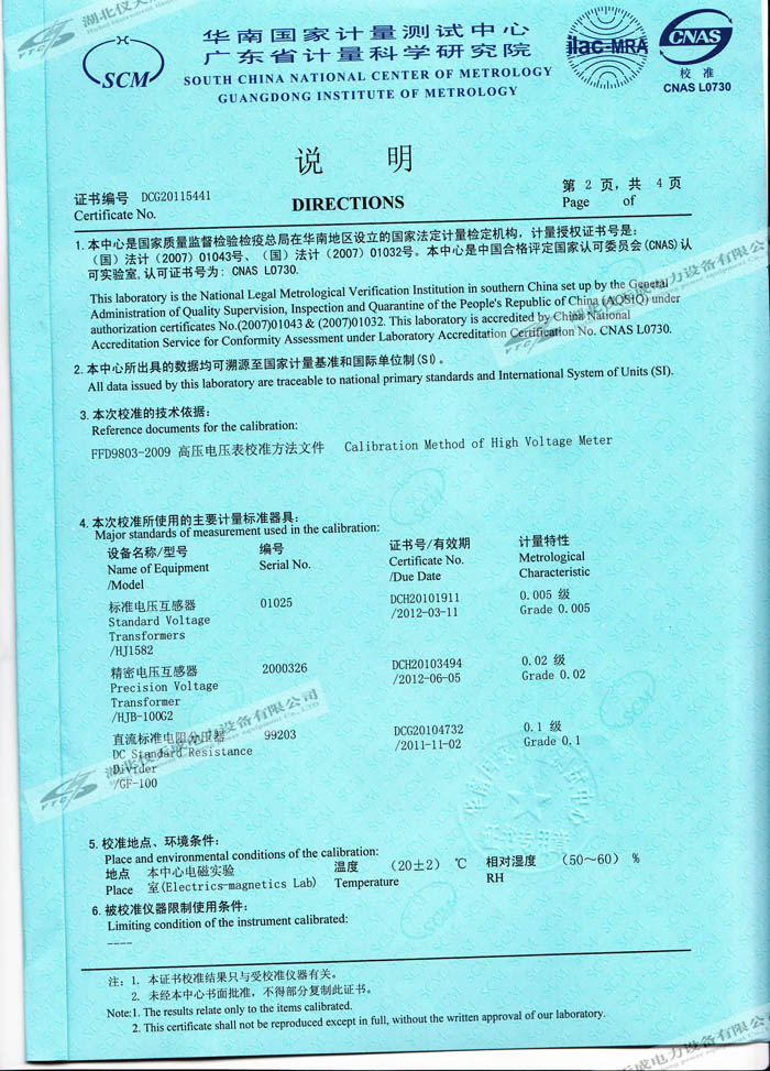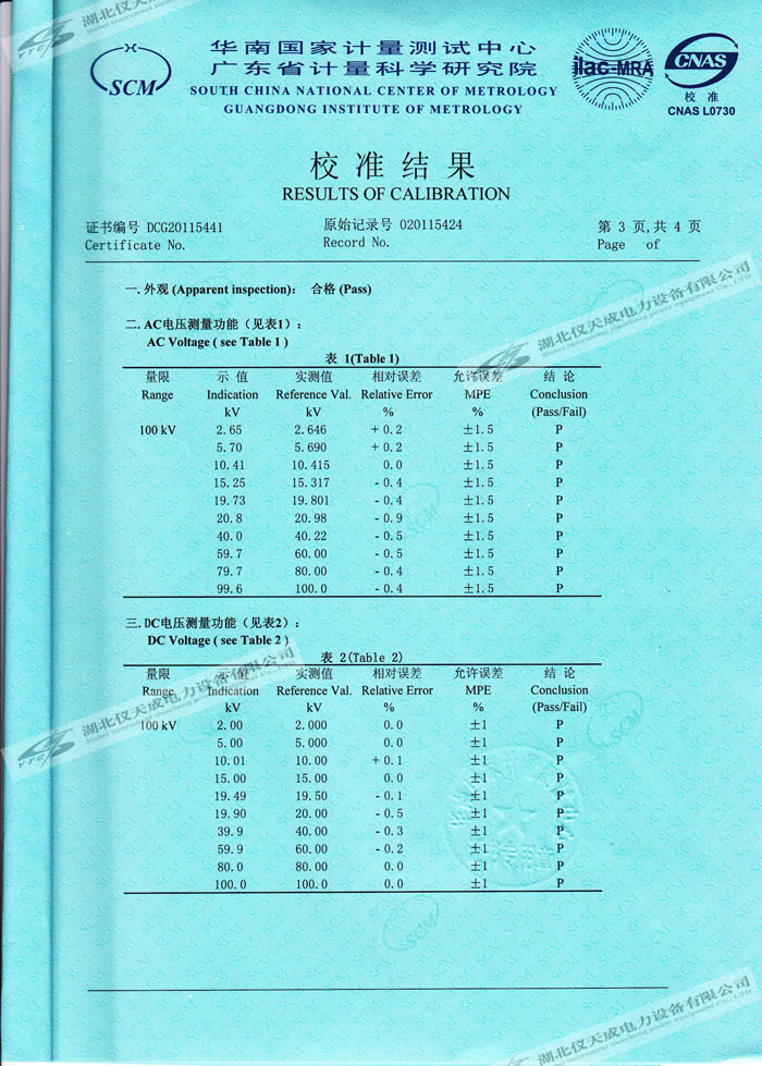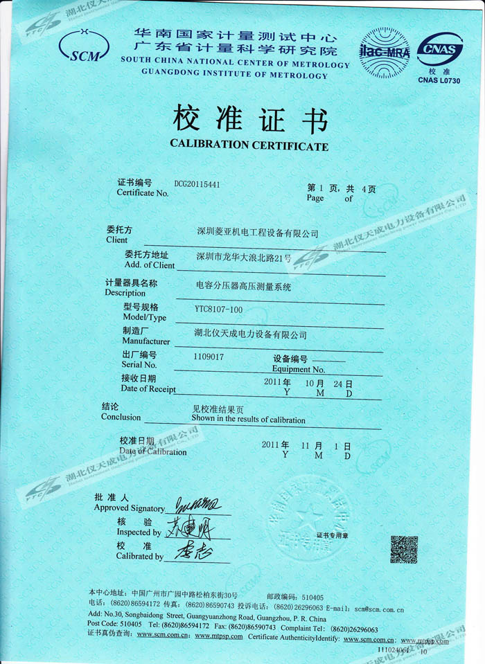 轉(zhuǎn)載:"YTC8107-100電容分壓器高壓測(cè)量系統(tǒng)的資質(zhì)證書(shū)" 請(qǐng)注明來(lái)源于儀天成電力。 更多技術(shù)問(wèn)題請(qǐng)致電儀天成電力客戶服務(wù):027-87876585,技術(shù)部專線:027-87876585,在線客服:719388481