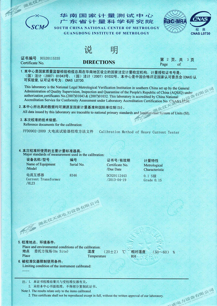 轉載:"YTCDG-2000A大電流發生器的資質證書" 請注明來源于儀天成電力。 更多技術問題請致電儀天成電力客戶服務:027-87876585,技術部專線:027-87876585,在線客服:719388481